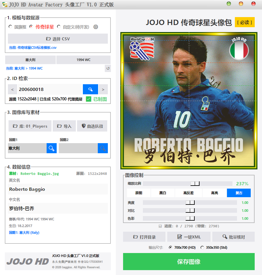 作为一个巴乔老球迷,在这个特殊的日子里,我决定将这款工具正式发布,以此向我心中永远的偶像致敬。