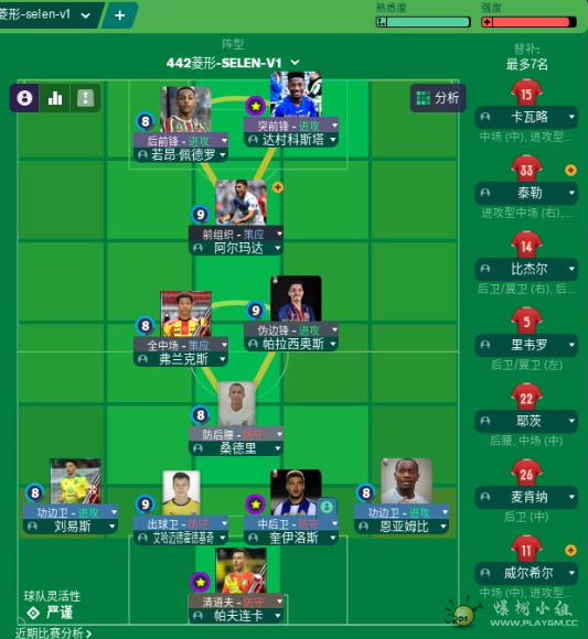 1、保存2套阵容,联赛杯赛切换踢(看到体能95以下就难受)